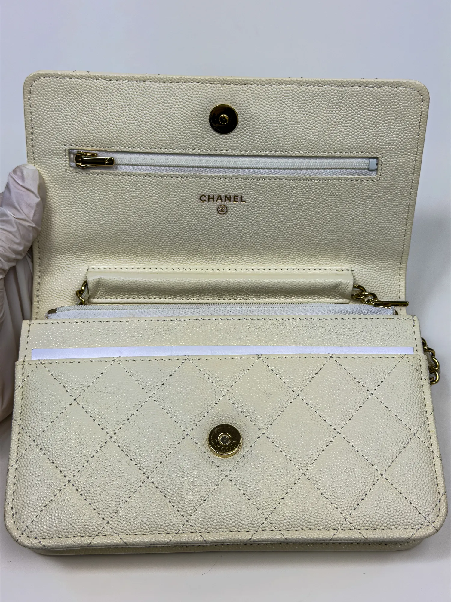 샤넬 장지갑 구매했어요. 약간의 사용감은 있지만 가격 대비 만족합니다. 금장 상태가 아주 좋아서 기뻐요.