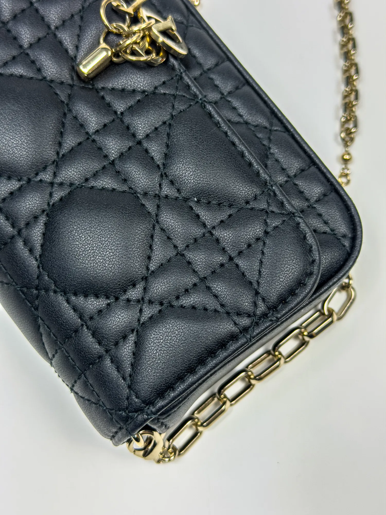 DIOR 디올 Dior Talk 휴대폰 파우치 블랙 까나쥬 양가죽