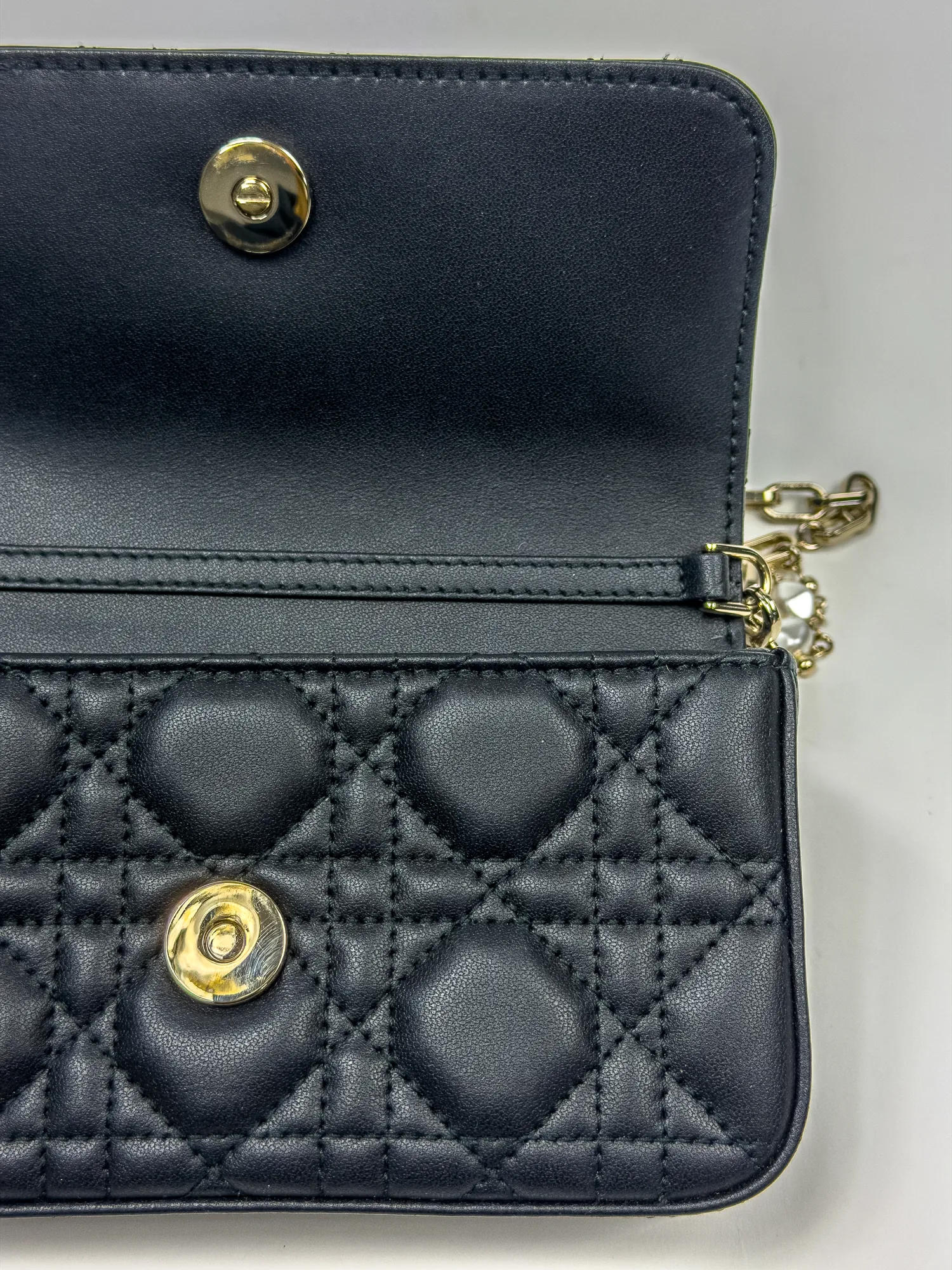 블랙 컬러 특유의 감성이 돋보이며, 디올 참이(가) 포인트가 되어 꿈꾸는 듯한 매력을 더합니다. 지갑을 열 때마다 만족감을 주는 아이템입니다.