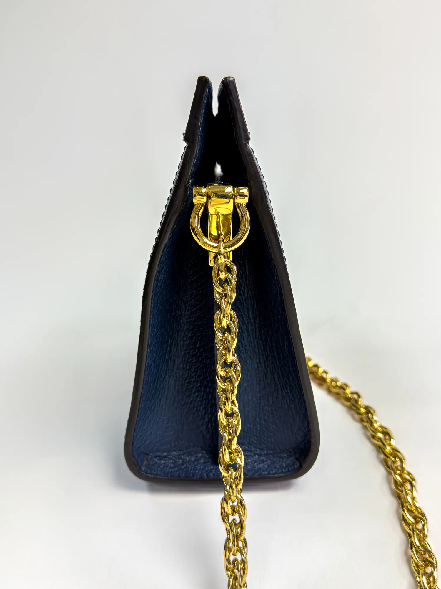 네이비 컬러 특유의 감성이 돋보이며, 웹 스트라이프이(가) 포인트가 되어 화려한 매력을 더합니다. 데일리부터 특별한 자리까지 어디서든 빛나는 아이템입니다.
