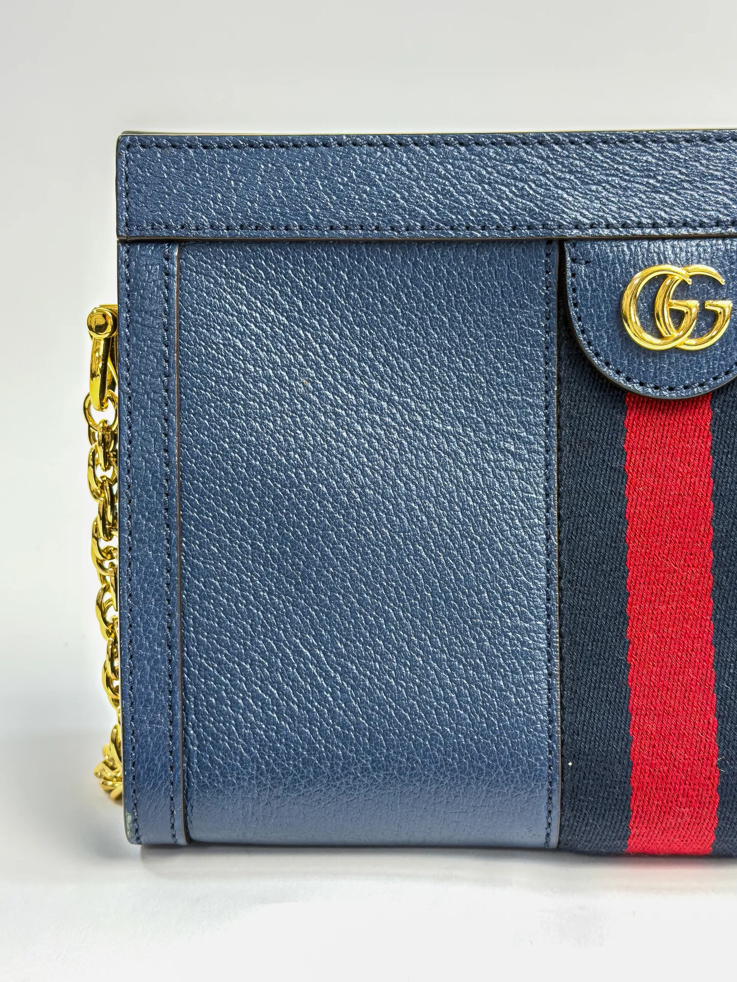 구찌 오피디아 GG 스몰 체인 숄더백 네이비