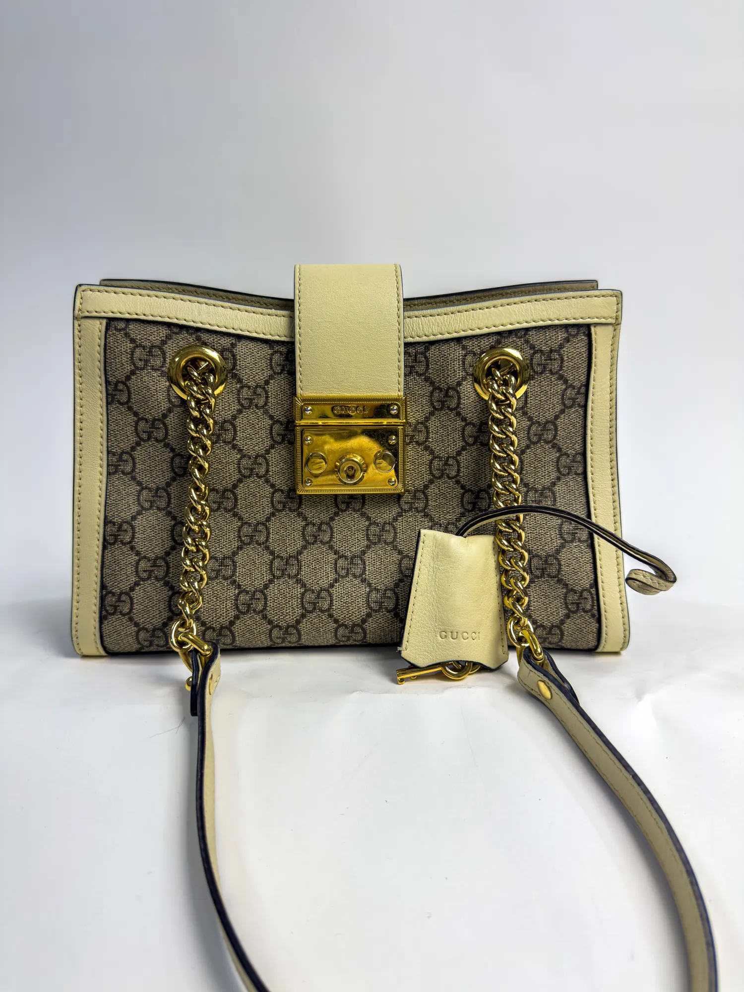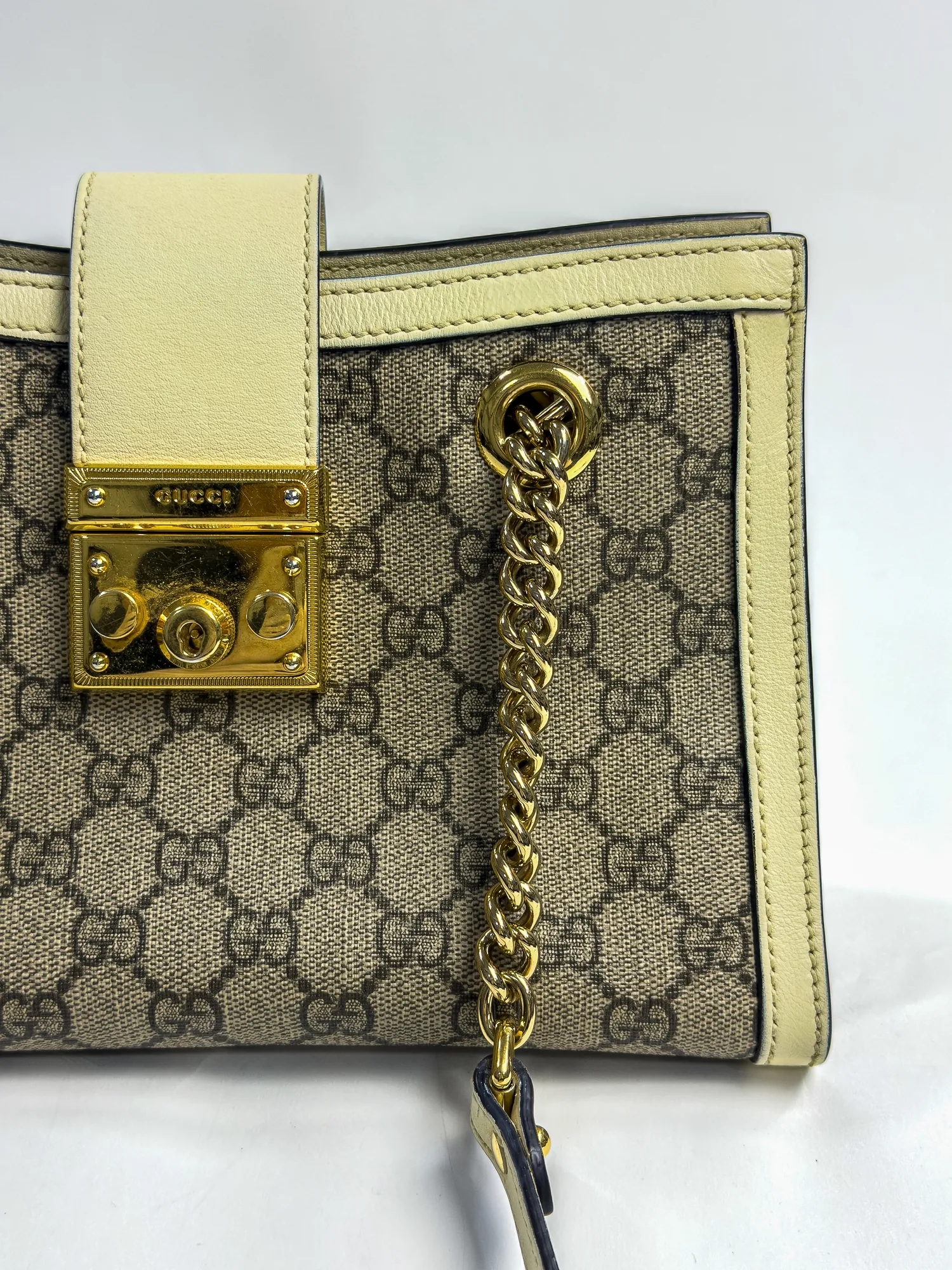 GUCCI 구찌 GG 수프림 캔버스 패들락 금장체인 숄더백