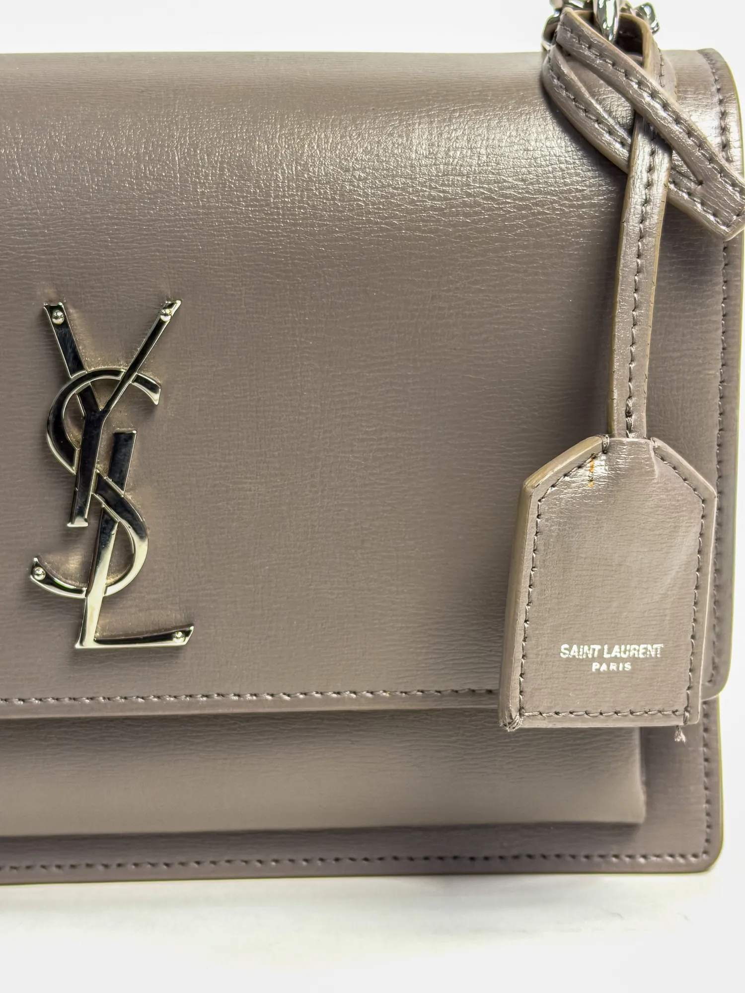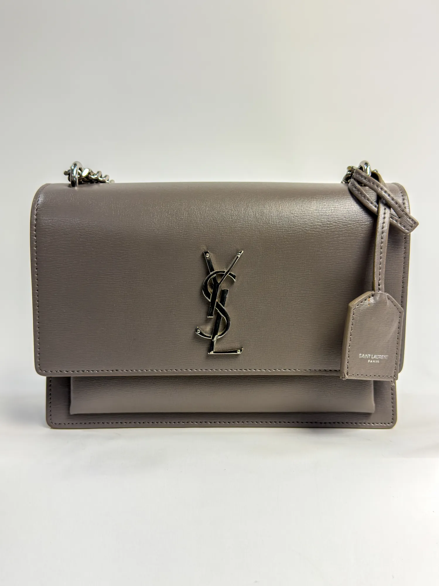 SAINT LAURENT 생로랑 선셋 체인 숄더백 미디움 그레이