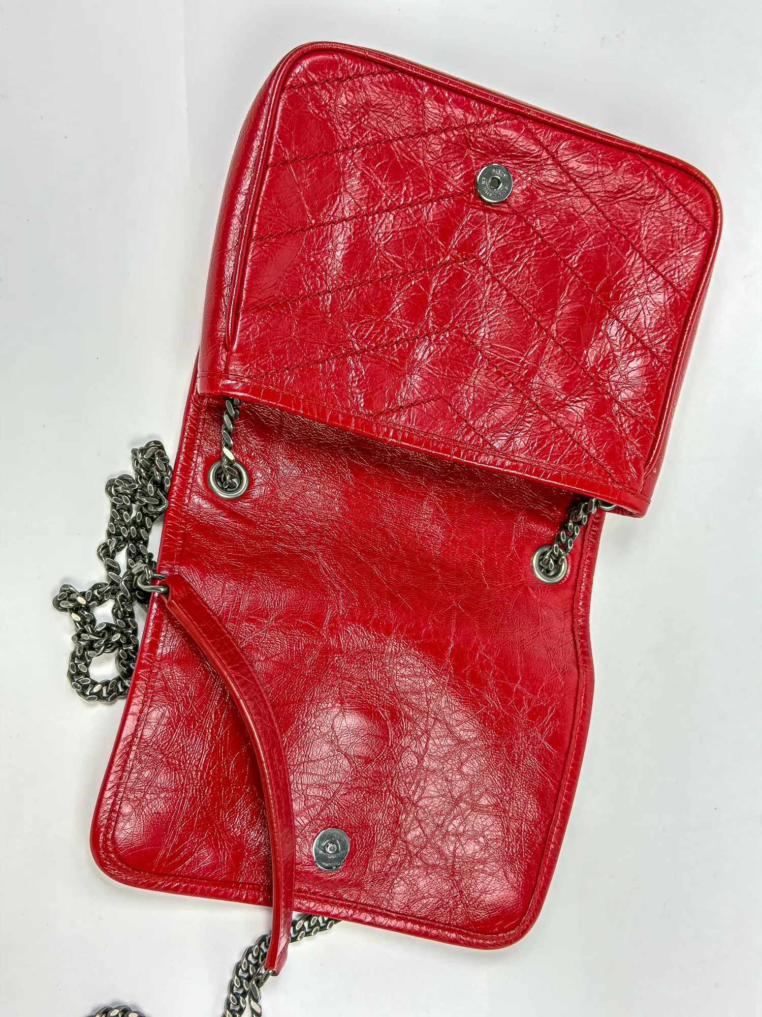 생로랑의 생로랑 니키 크링클 빈티지 체인 숄더백 583103입니다. 컨디션 등급 A(양호)으로 감정 완료된 정품입니다. 사이즈: 28×20×8 cm • Archived in Monchic Vault (몽시크 아카이브 등재 완료) • 전국 무료 배송